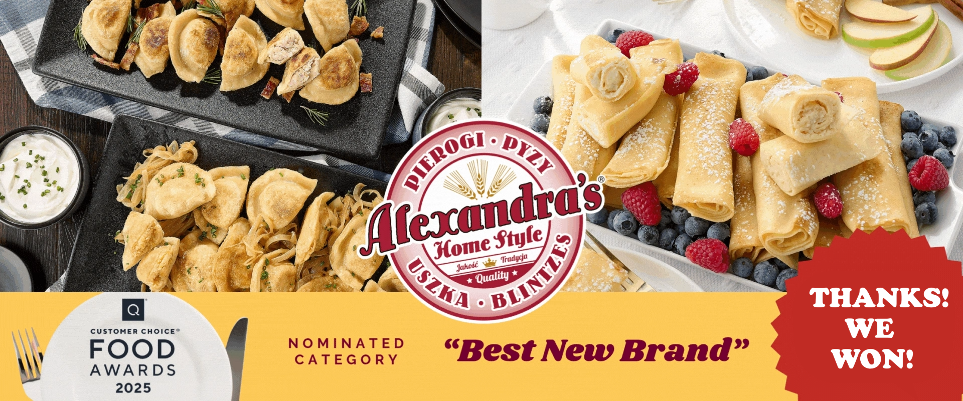 Alexandra Foods is a family-run business specializing in the production of an assortment of traditional Eastern European foods. We are best known for our 18 flavors of pierogi. However, we also produce a variety of other related products including uszka, pyzy, cheese blintzes, finger dumplings, and Silesian dumplings. You can find us in 30 states. We love working with our customers, receiving feedback and continuously improving our product. We hope that when you taste our product, you are taken back to memories of your own family’s recipes and traditions.